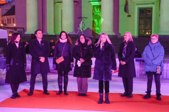 Vilniaus Rotušės ledo čiuožykla nušvito rožine spalva – siuntė svarbią žinutę apie krūties vėžio prevenciją